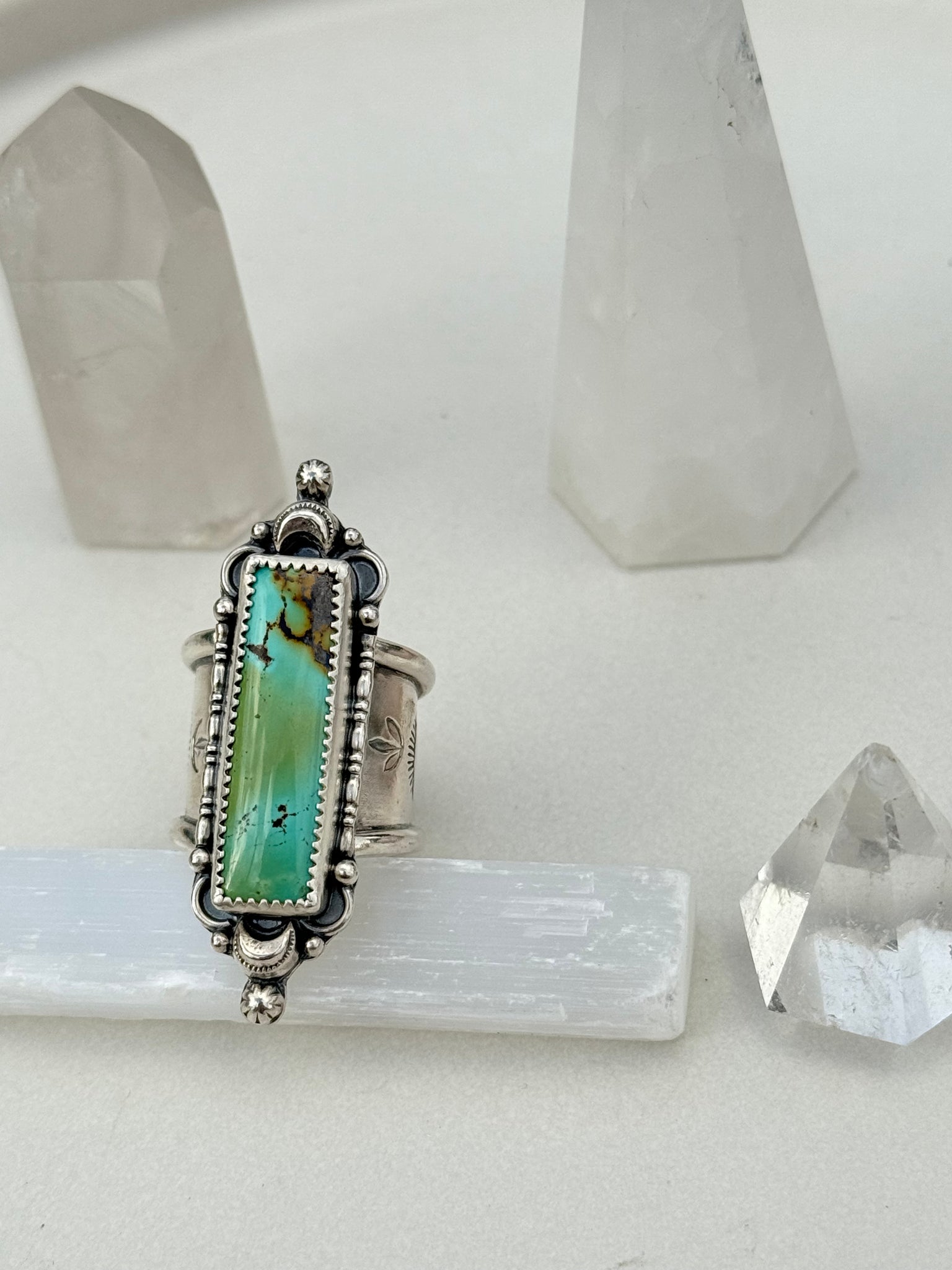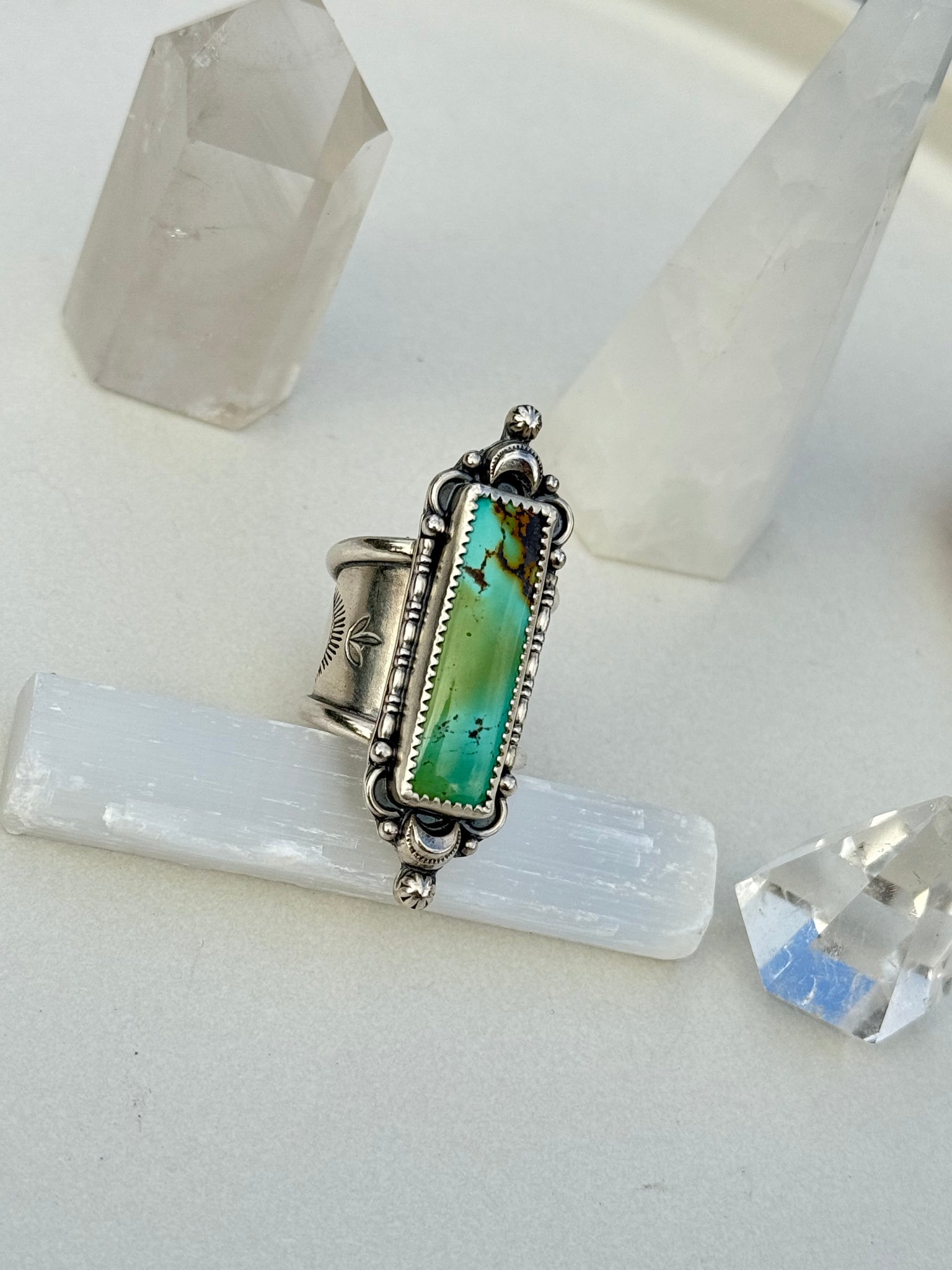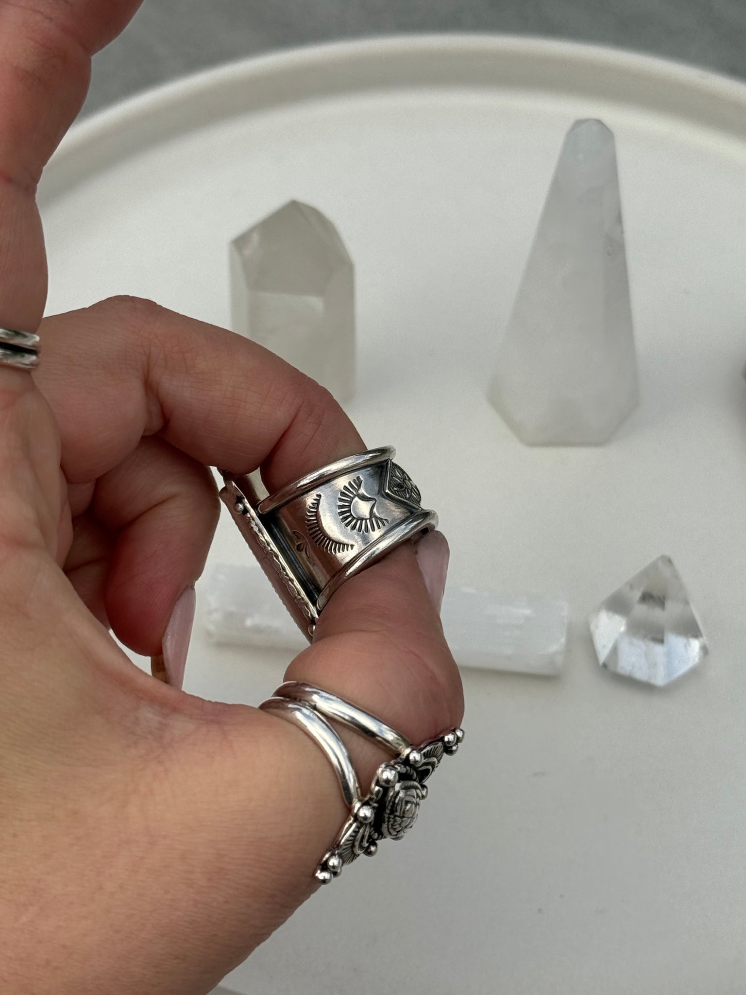 Set on a stamped wide band