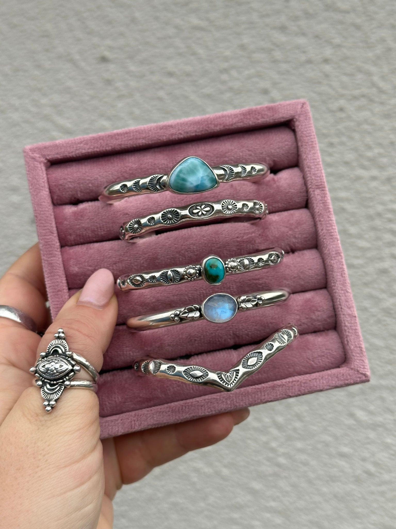 Looks great stacked with stamped cuffs or on its own